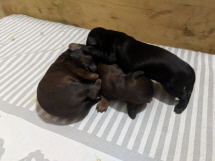 Unsere „Hs von der Heseper Kapelle FCI“, Zwerglanghaarteckel, WT 24.04.2019, entwickeln sich prächtig. Eltern der drei kleinen Hündinnen, sind „Bijou von der Heseper Kapelle FCI“ und „Didi von der Heseper Kapelle FCI“. Bei Interesse an einem Welpen aus unserer DTK-/VDH-Zucht freuen wir uns über PN oder Anruf unter 05921/39476 (48531 Nordhorn). Unsere Welpen wachsen bei bester Prägung in Haus und Garten heran. Auch der Rüde kann bei uns kennengelernt werden. |