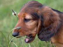 Rote und schwarzrote Langhaarteckel, Zwerg- und Kaninchenteckel |